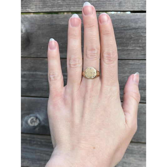 Vintage Solid 10k Yellow Gold Monogram JGC Pattern Signet Ring - Size 6.75