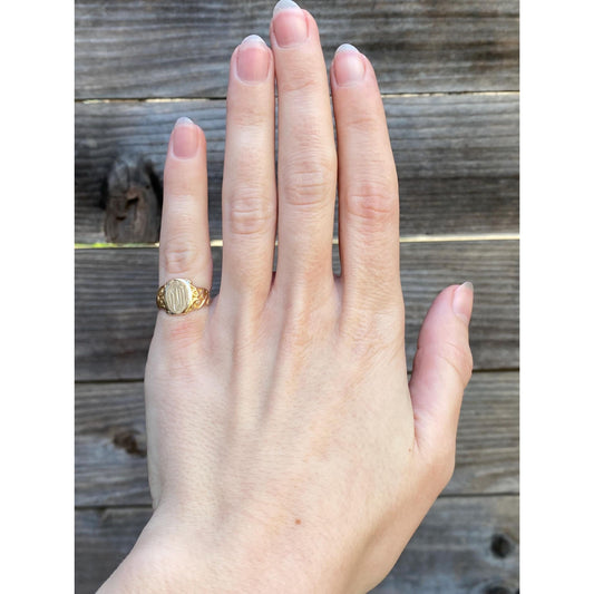 Vintage Solid 10k Yellow Gold Engraved Scrollwork Signet Ring - Size 2.5-2.75
