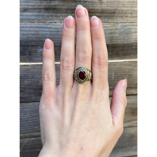 Vintage Solid 10k White Gold Ruby Concord HS 1970 Class Ring - Size 6.75