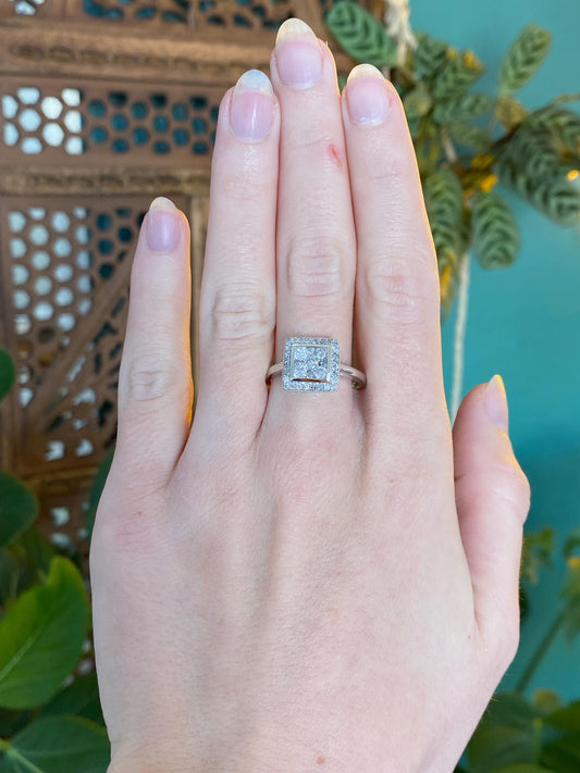 Vintage Solid 10k White Gold Diamond Square Ring - Size 9