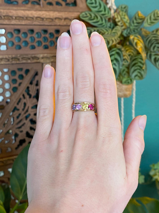 Vintage Solid 14k Yellow Gold Colored Sapphire Row Ring Band - Size 6
