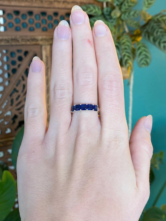 Vintage Solid 10k White Gold Blue Spinel Row Ring - Size 7