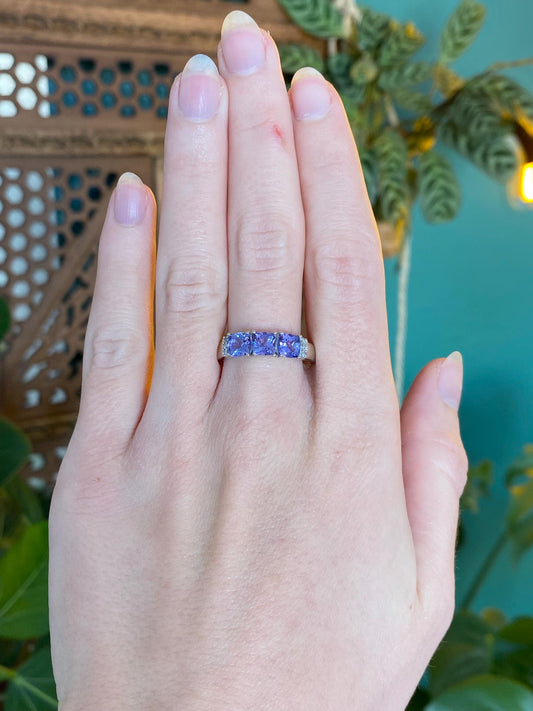Vintage Solid 10k White Gold Tanzanite Ring - Size 9