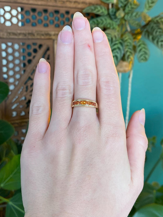 Vintage Solid 10k Yellow Gold Orange Sapphire Ring Band - Size 7