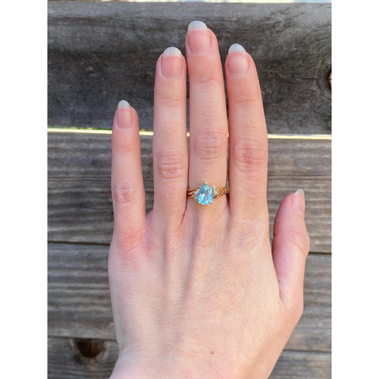 Vintage Solid 10k Yellow Gold Diamond Topaz Ring - Size 6.5