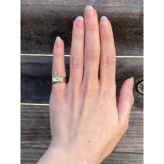 Vintage Solid 10k Yellow Gold Opal Mosaic Ring - Size 4.25
