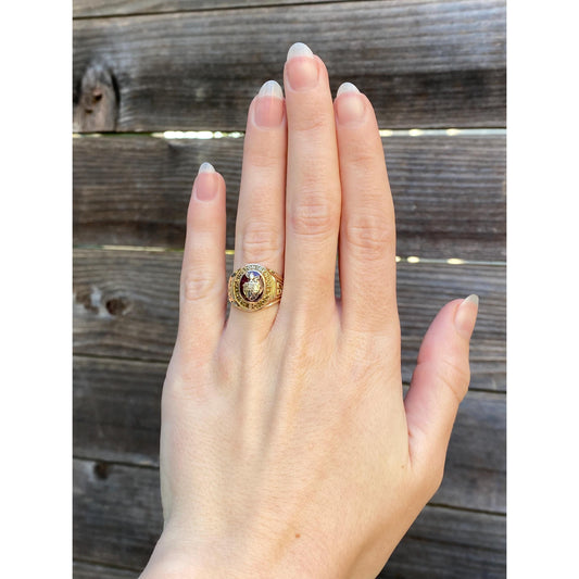 Vintage Solid 10k Yellow Gold Ruby Abington Senior Class Ring - Size 5.25