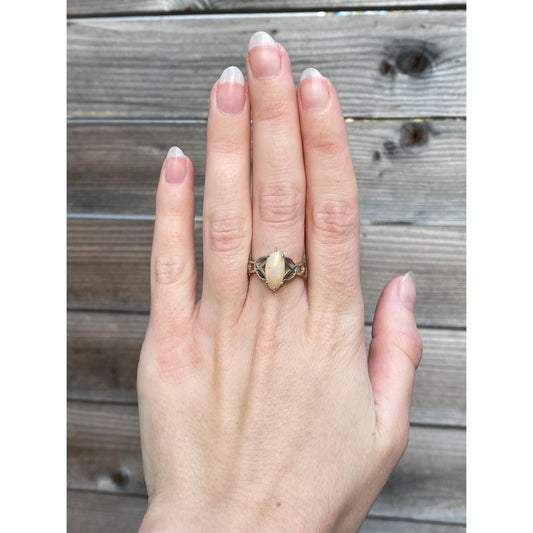 Vintage Solid 14k White Gold Opal Marquis Ring - Size 6