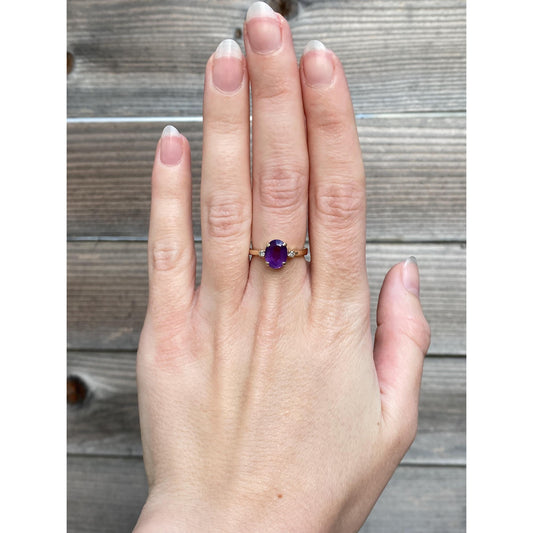 Vintage Solid 14k Yellow Gold Diamond Amethyst Ring - Size 5.75
