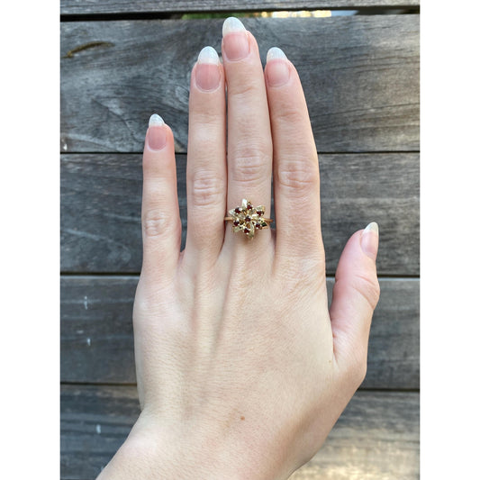 Vintage Solid 14k Yellow Gold Garnet Knot Ring - Size 6.25