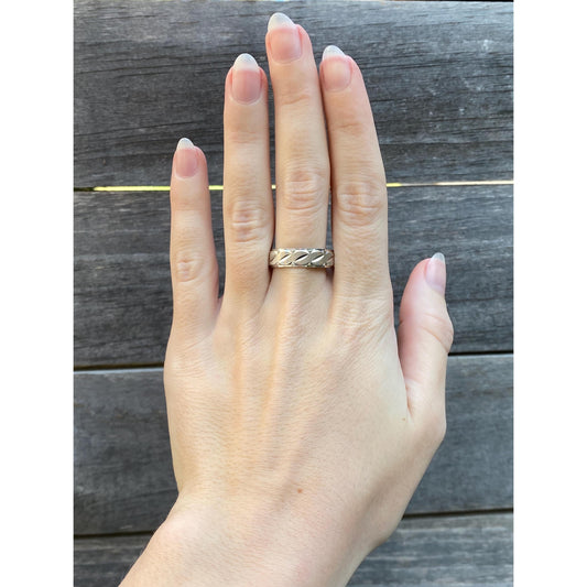 Vintage Solid 14k White Gold Diamond Cut Ring Band - Size 10.25