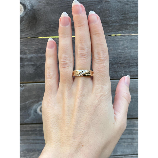 Vintage Solid 10k Yellow Gold Diamond Ring Band - Size 13.75