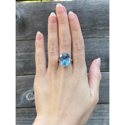 Vintage Solid 14k Yellow Gold Light Blue Topaz Ring - Size 9