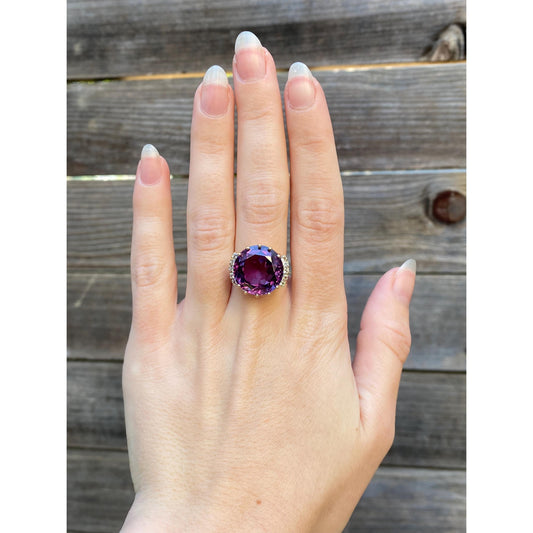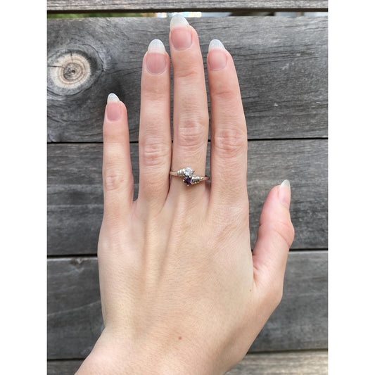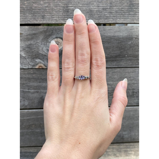 Vintage Solid 10k White Gold Lavender & Clear Cubic Zirconia Ring - Size 7