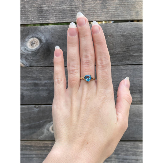 Vintage Solid 14k Yellow Gold Topaz Heart Ring - Size 7