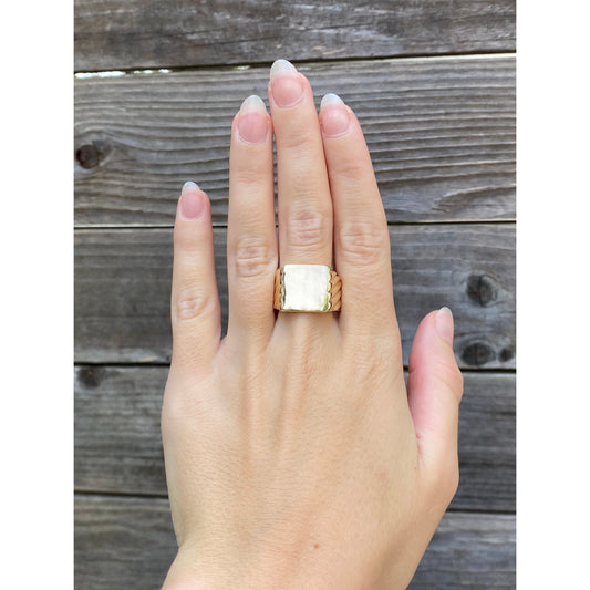 Vintage Solid 14k Yellow Gold Square Designed Signet Ring Band - Size 9.25