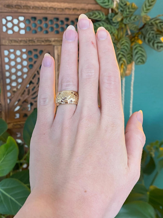 Vintage Solid 14k Yellow Gold Wide Floral Open Work Ring Band - Size 4.75