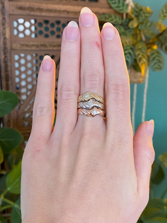 Vintage Solid 14k Tri Tone Gold Diamond Ring Band - Size 6.25