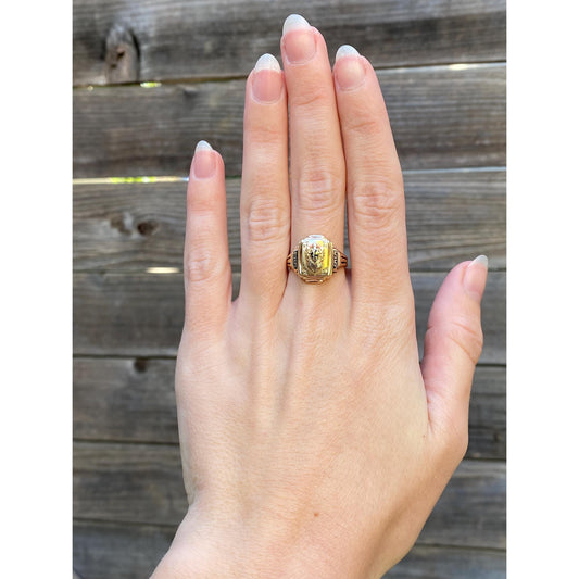 Vintage Solid 10k Yellow Gold 'Montpelier H.S.' Class Ring - Size 4.75