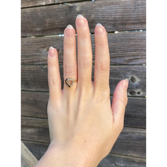 Vintage Solid 14k Yellow Gold Diamond Blue Spinel Heart Ring - Size 5.5