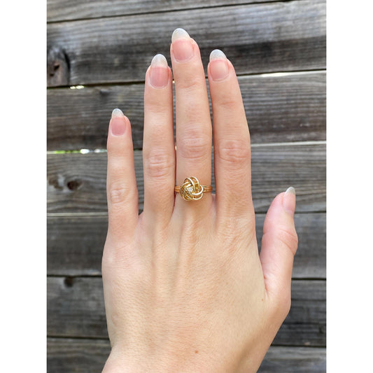 Vintage Solid 14k Yellow Gold Diamond Knot Ring - Size 6.5