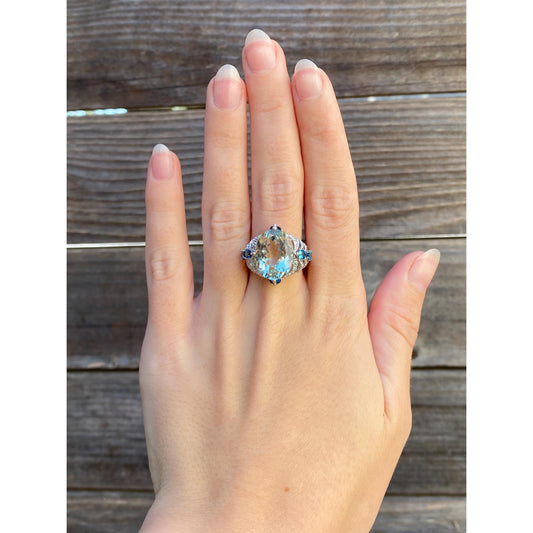 Vintage Solid 14k White Gold Diamond Green & Blue Quartz Ring - Size 7.75