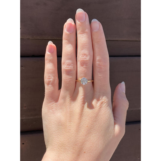 Vintage Solid 18k White & Yellow Gold Diamond Cluster Ring - Size 7.75