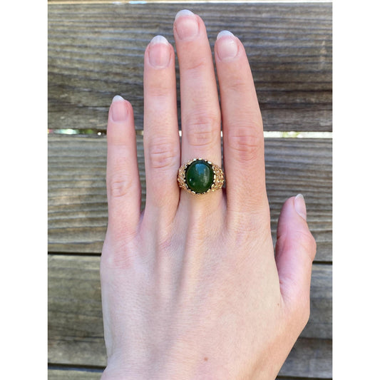 Vintage Solid 14k Yellow Gold Nephrite Open Work Signet Ring - Size 5.75