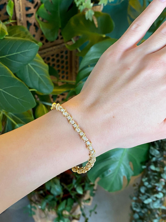 Vintage Solid 14k Yellow Gold Diamond Link Bracelet - 7.25 inches