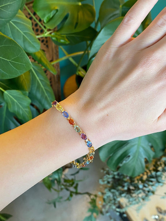 Vintage Solid 14k Yellow Gold Colored Sapphire Link Bracelet - 8.25 inches