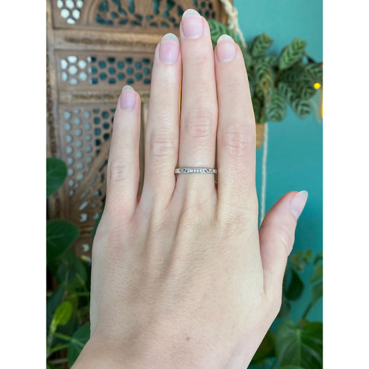 Vintage Solid 14k White Gold Lined Ring Band - Size 11.25