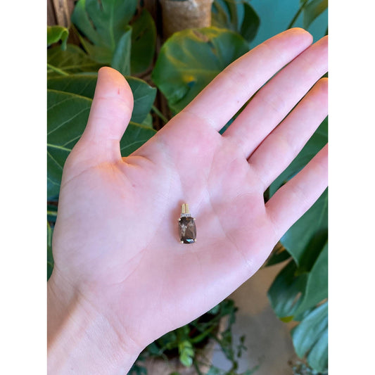 Vintage Solid 10k Yellow Gold Diamond Smokey Quartz Charm
