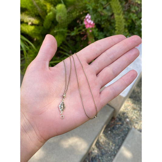 Vintage Solid 14k Yellow Gold Filigree Charm Holder Cable Chain Necklace - 15.25 inches