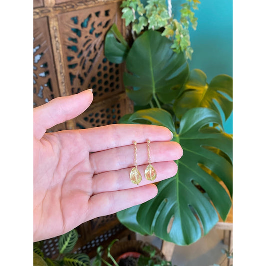 Solid 14k Lemon Quartz Drop Dangle Earrings