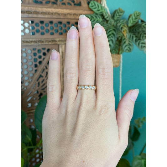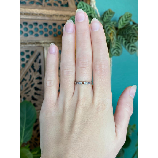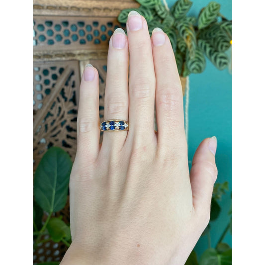 Vintage Solid 10k Yellow Gold Diamond Blue Sapphire Ring Band - Size 5.75