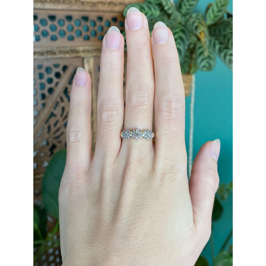 Vintage Solid 10k Yellow Gold Diamond Flowers Ring - Size 7