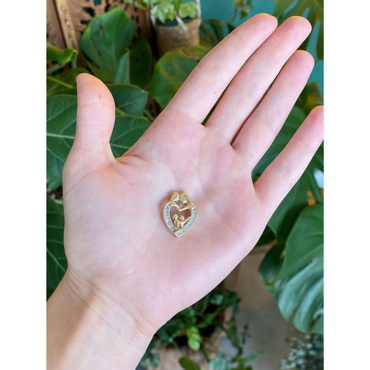 Vintage Solid 10k Yellow Gold Diamond Abstract Mother Child Charm