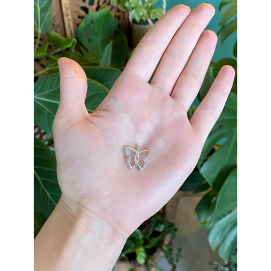 Vintage 10k White Gold Diamond Butterfly Charm