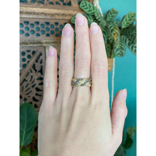 Vintage Solid 10k Yellow Gold Yellow & Black Diamond Twist Ring Band - Size 7