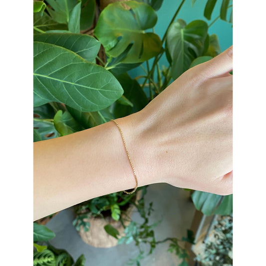 Vintage Solid 14k Yellow Gold Box Chain Bracelet - 7.5 inches