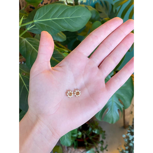 Vintage Solid 14k Yellow Gold Diamond Flower Earring Jackets