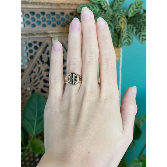 Vintage Solid 10k Yellow Gold Enamel 1929 DHS Class Ring - Size 5.75