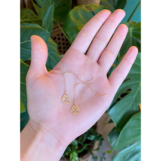 Vintage Solid 14k Yellow Gold Diamond Cut Filigree Threader Earrings