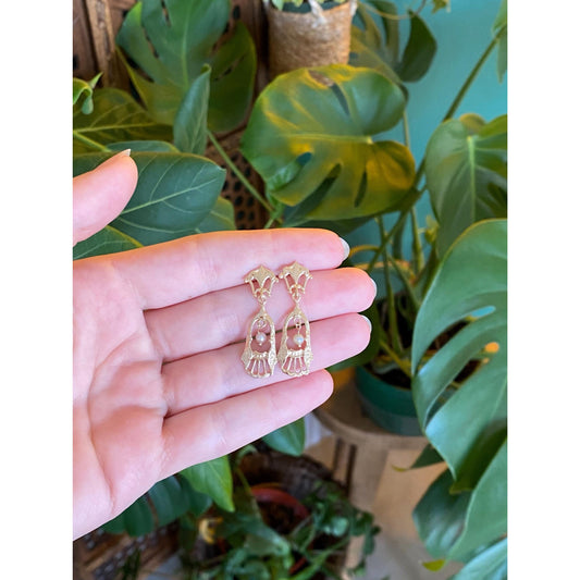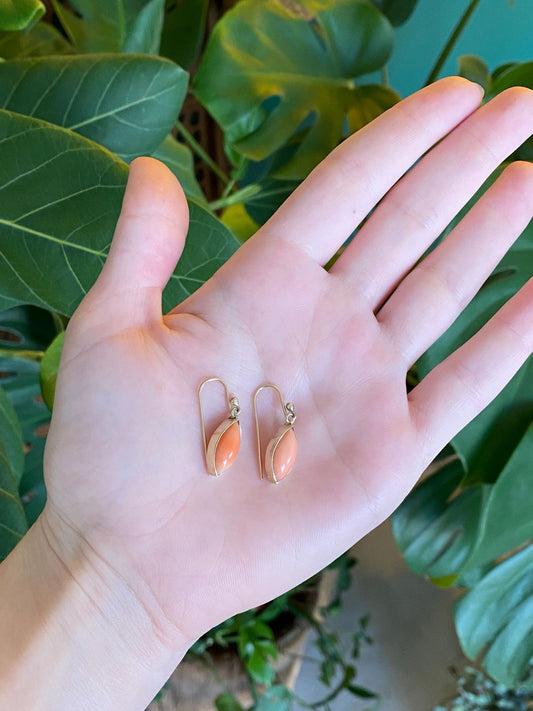 Vintage Solid 9k Yellow Gold Coral Marquis Dangle Earrings