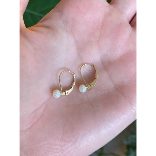 Vintage Solid 14k Yellow Gold Tiny Pearl Drop Earrings