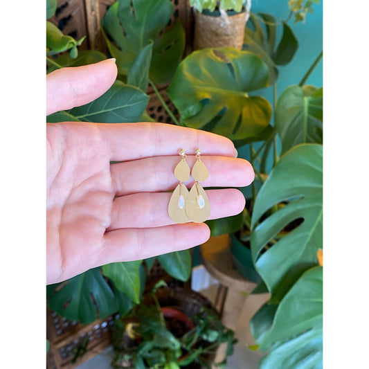 Vintage Solid 14k Yellow Gold Pearl Teardrop Dangle Stud Earrings