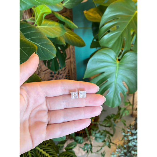 Solid 14k White Gold Clear Cubic Zirconia Square Stud Earrings