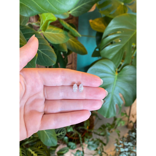 Solid 14k White Gold Marquis Clear Cubic Zirconia Stud Earrings