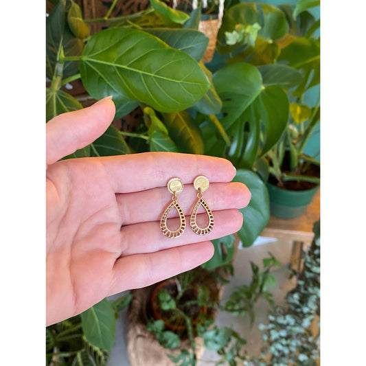 Vintage Solid 18k Yellow Gold Diamond Cut Teardrop Dangle Stud Earrings