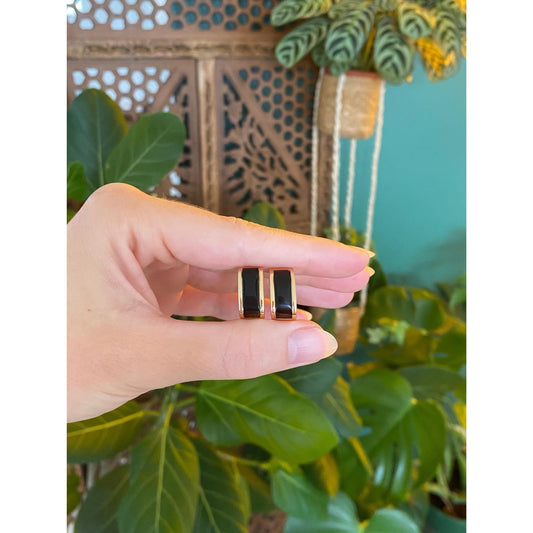 Vintage Solid 14k Yellow Gold Black Onyx Drop Earrings